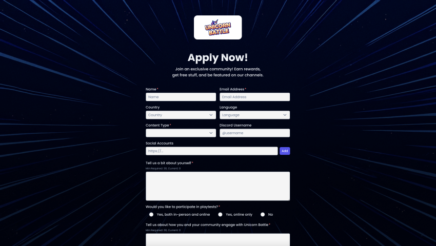 Branded application page with a branded background, logo, and polished sign-up experience.