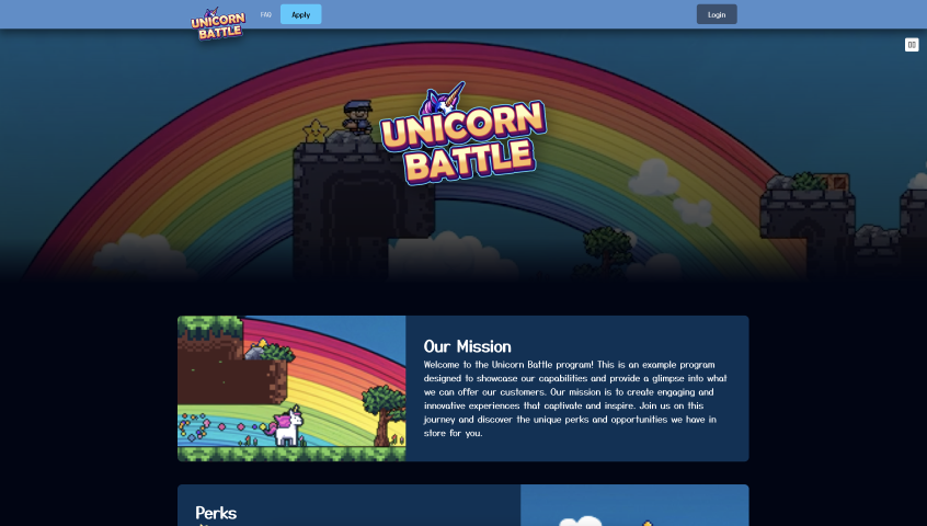 Rich landing page with hero video, mission statement, localization, FAQ, and integrated application form.